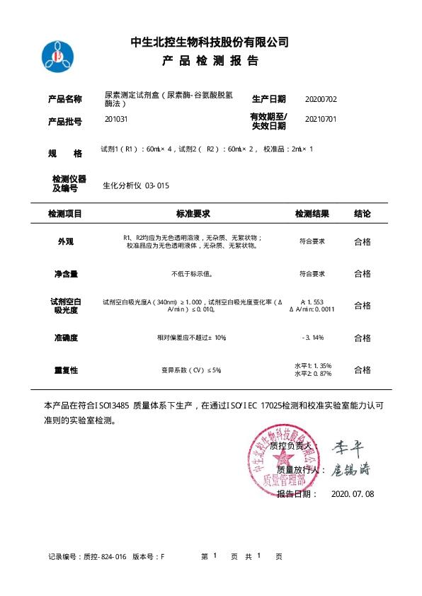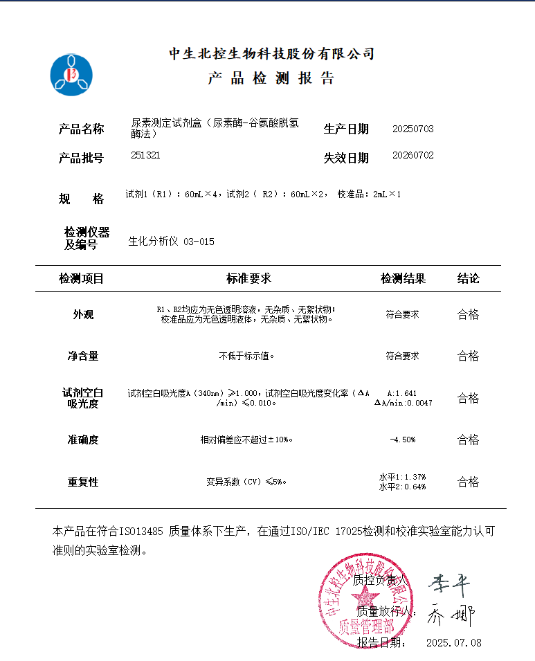 中生尿素测定试剂盒(尿素酶-谷氨酸脱氢酶法)