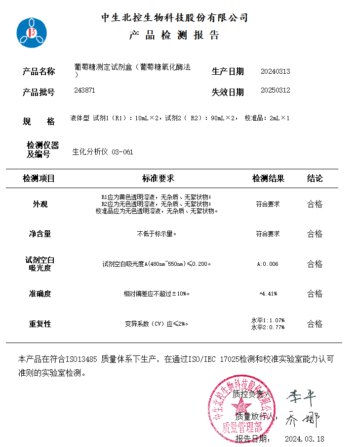 中生葡萄糖测定试剂盒(葡萄糖氧化酶法)