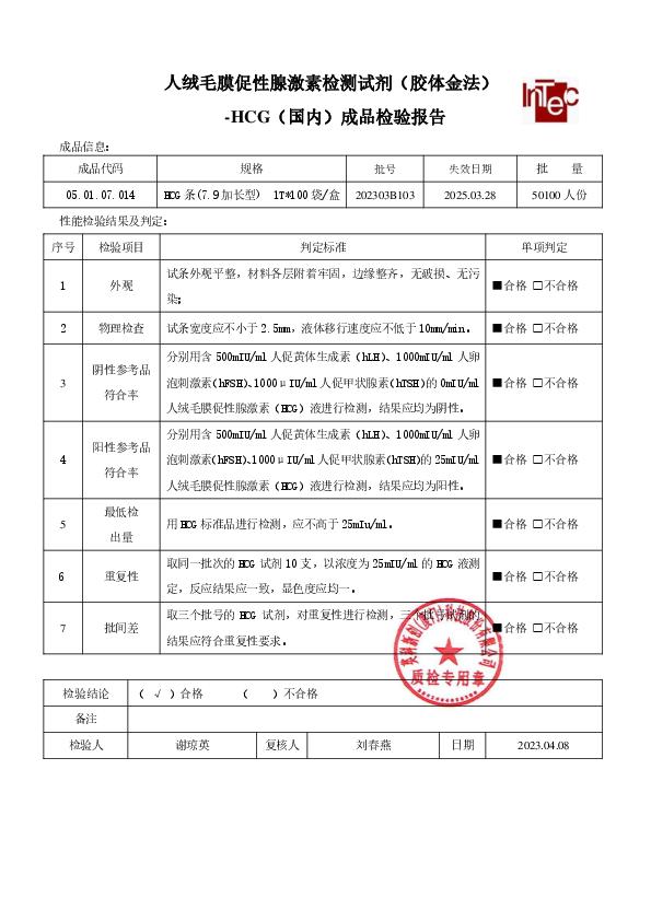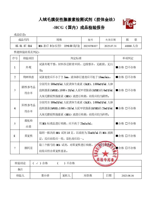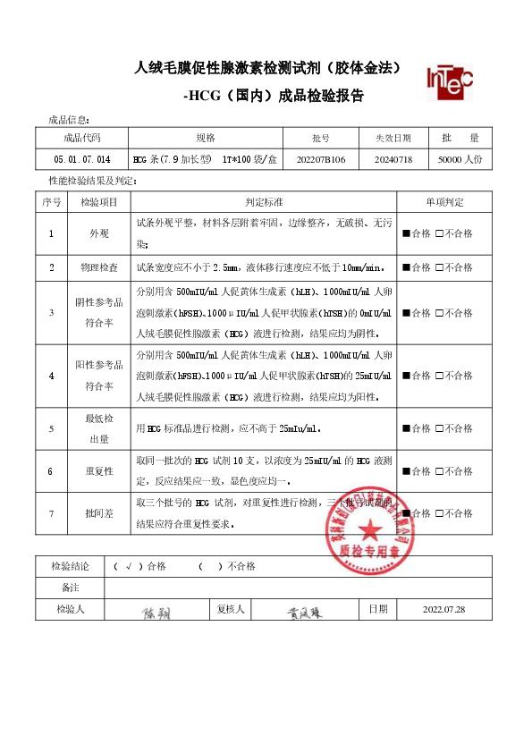人绒毛膜促性腺激素检测试剂(胶体金法)