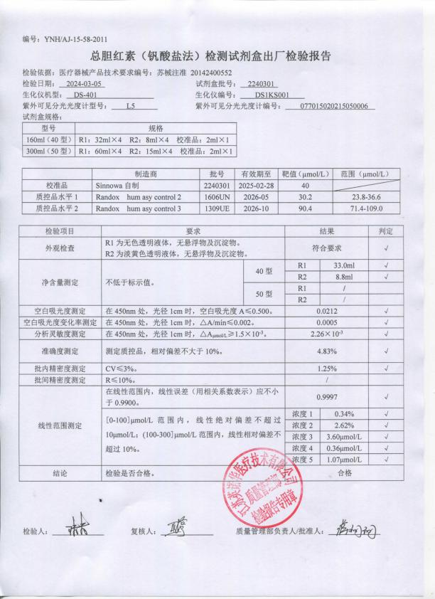 英诺华总胆红素检测试剂盒(钒酸盐法)