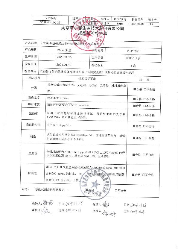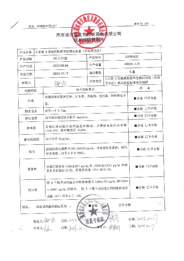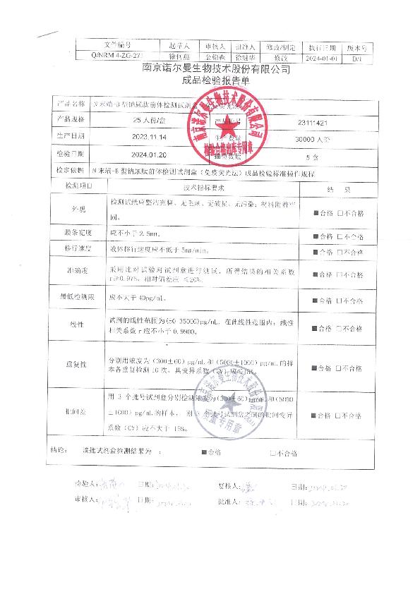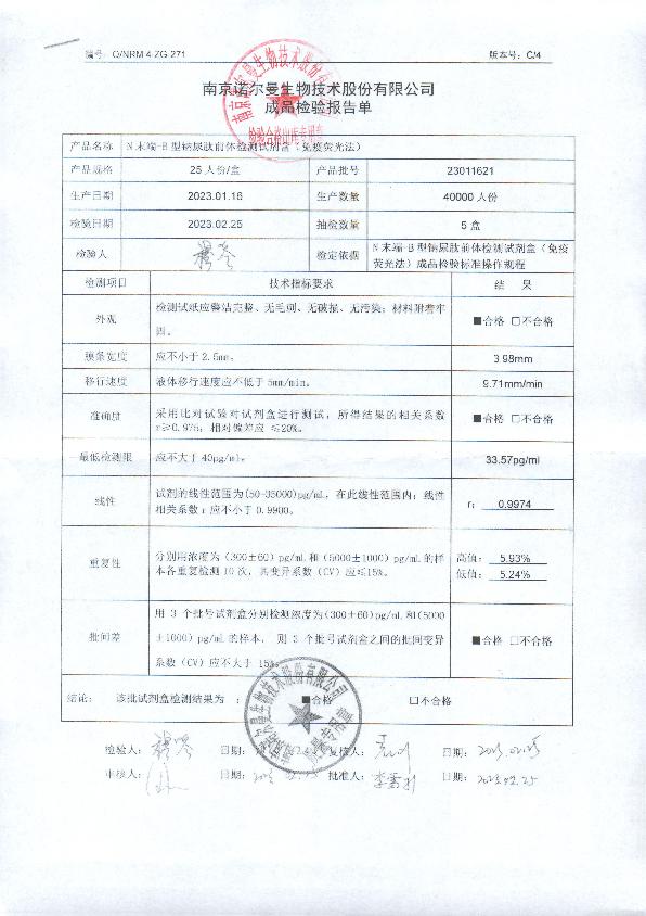诺尔曼N末端-B型钠尿肽前体检测试剂盒(免疫荧光法)