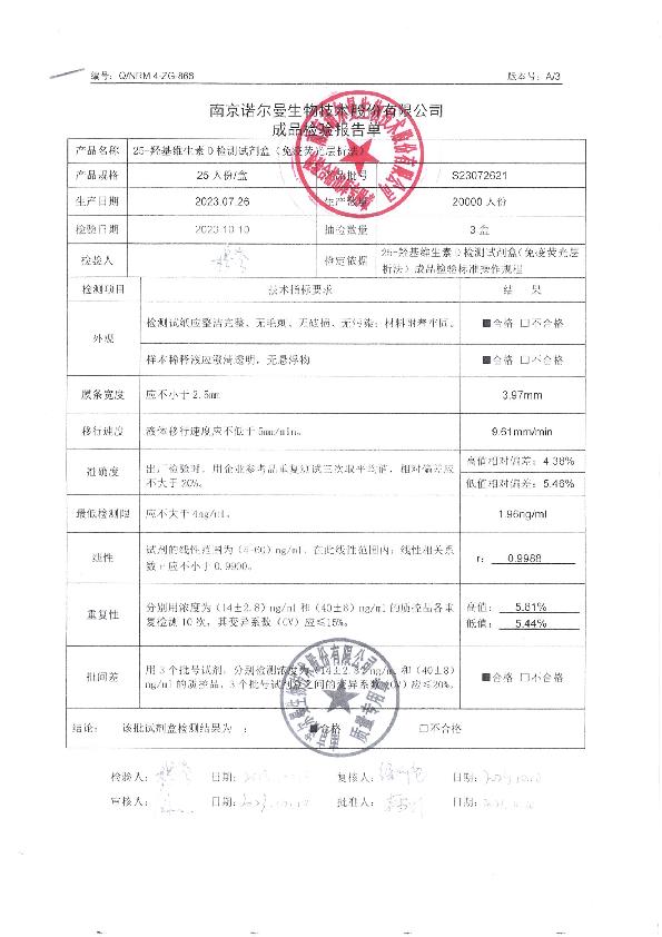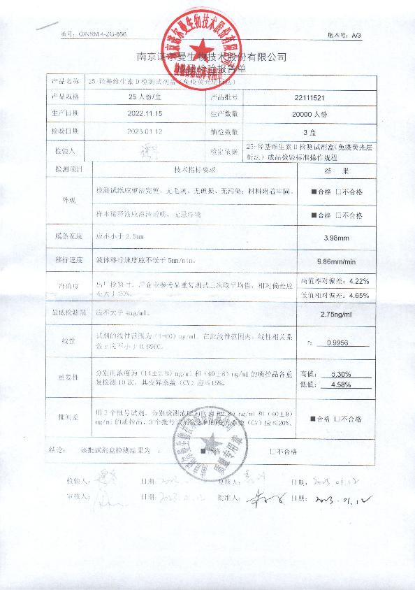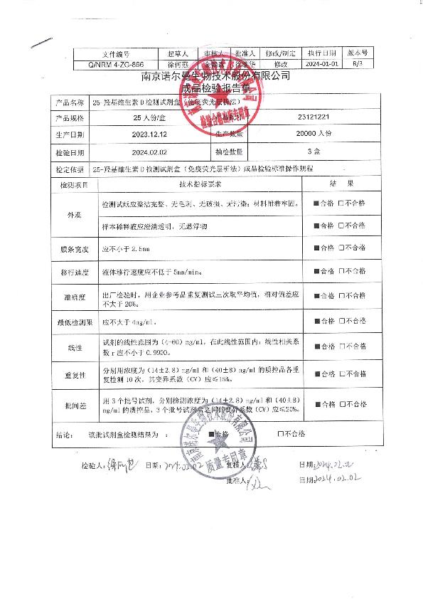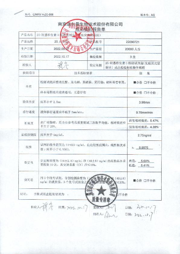 诺尔曼25-羟基维生素D检测试剂盒(免疫荧光层析法)
