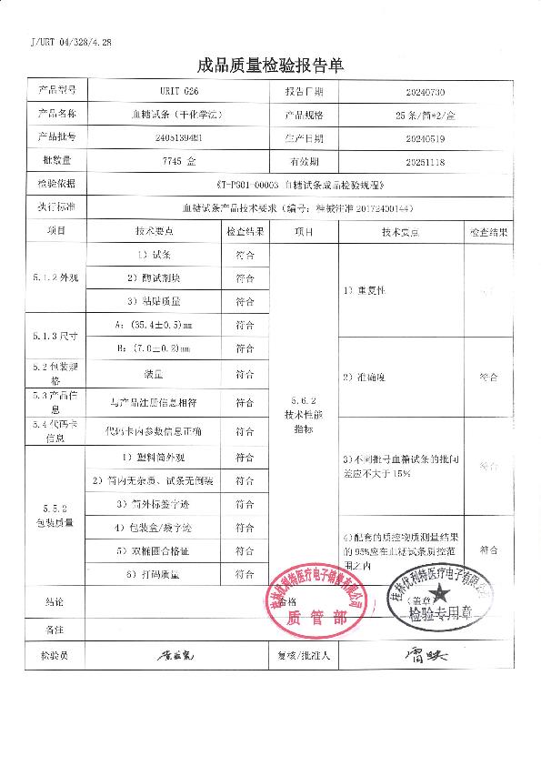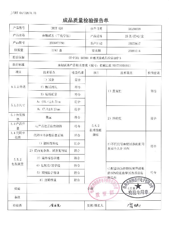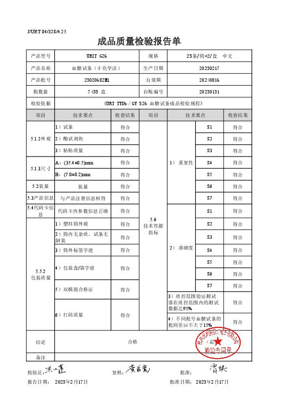 优利特血糖试条(干化学法)