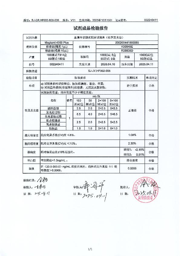 新产业血清甲状腺素(T4)测定试剂盒(化学发光法)