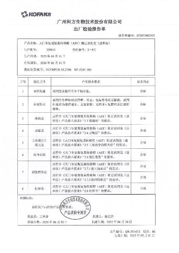 科方天门冬氨酸氨基转移酶(AST)测定试剂盒(速率法)