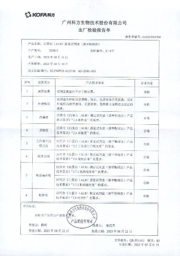 科方白蛋白(ALB)测定试剂盒(溴甲酚绿法)