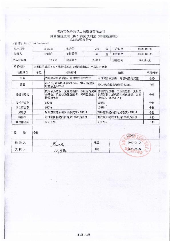 银科 细菌性阴道病(BV)(唾液酸酶法)(特殊)