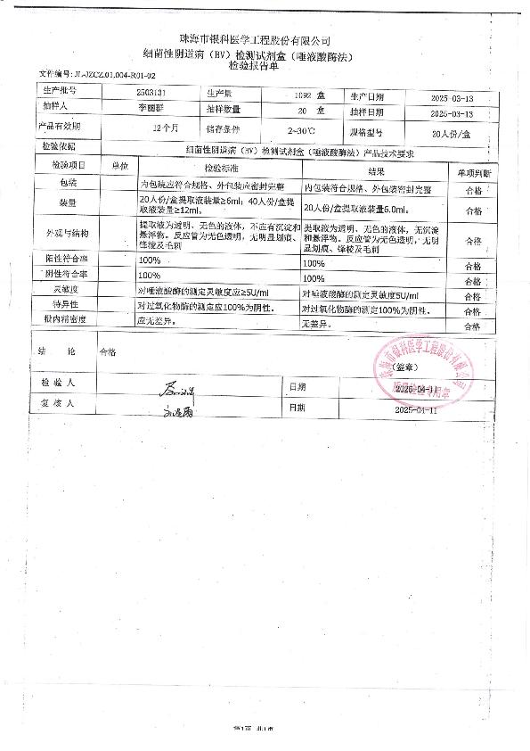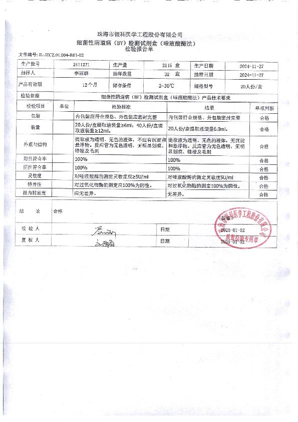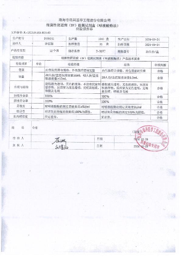 细菌性阴道病(BV)检测试剂盒(唾液酸酶法)