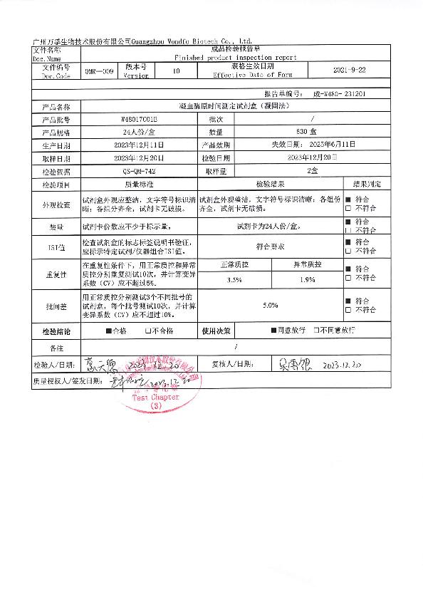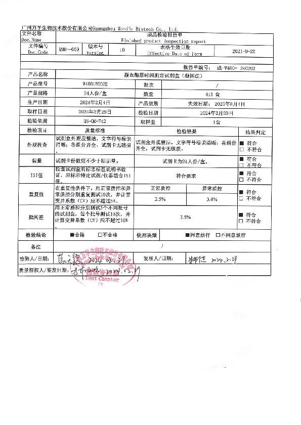 万孚凝血酶原时间测定试剂盒(凝固法)