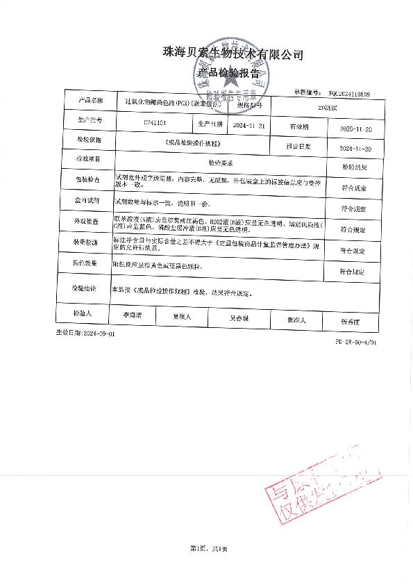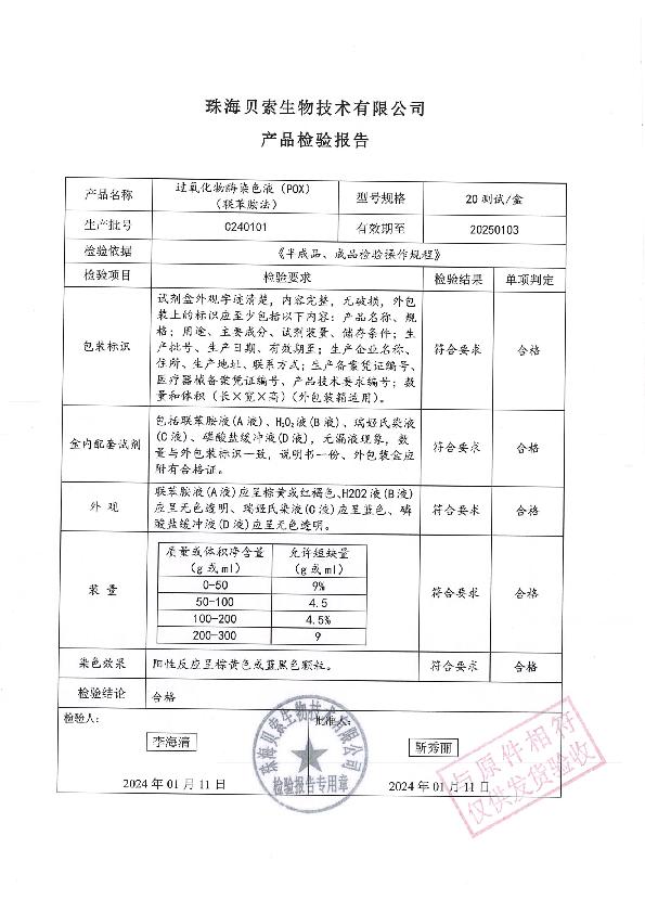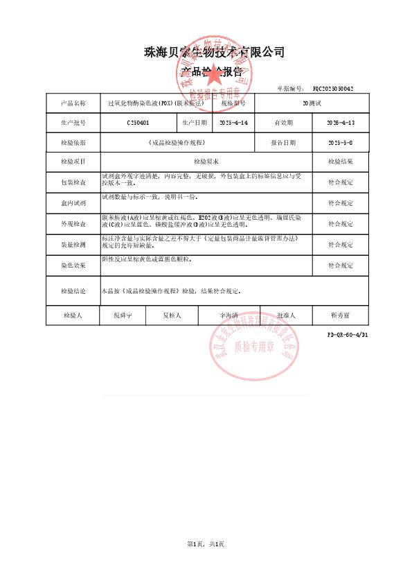 贝索 过氧化物酶染色液(POX)(联苯胺法)说明书