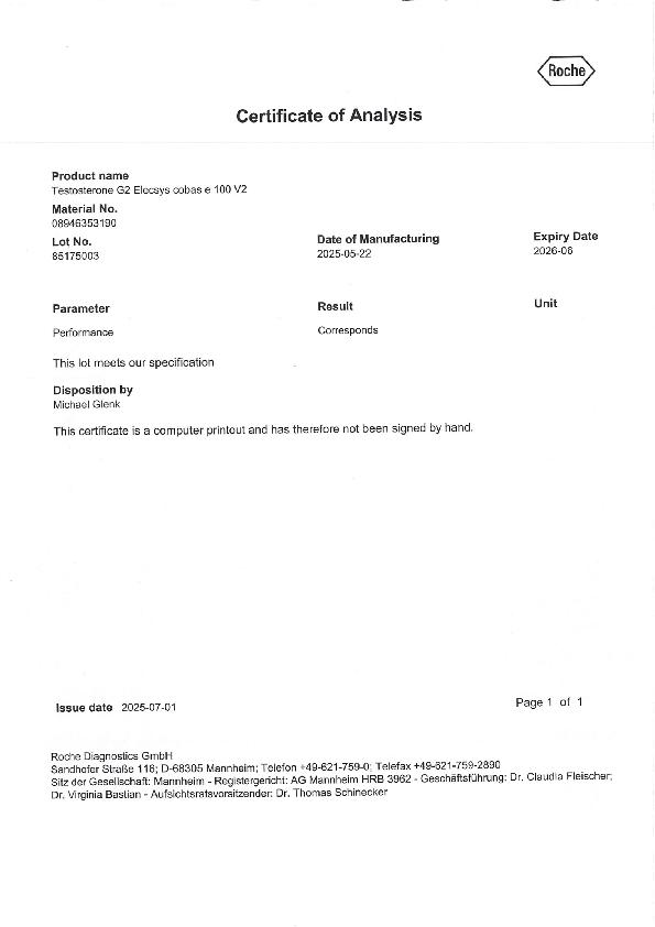 罗氏睾酮检测试剂盒(电化学发光法)