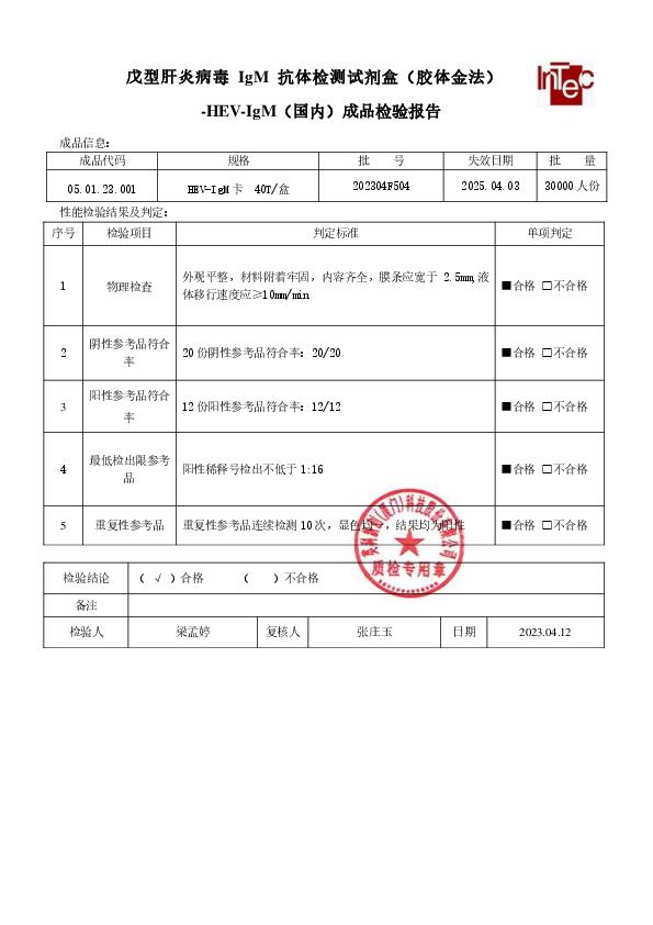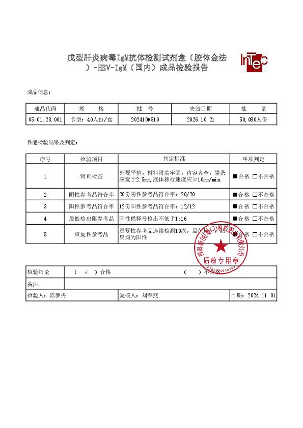 戊型肝炎病毒IgM抗体检测试剂盒(胶体金法)
