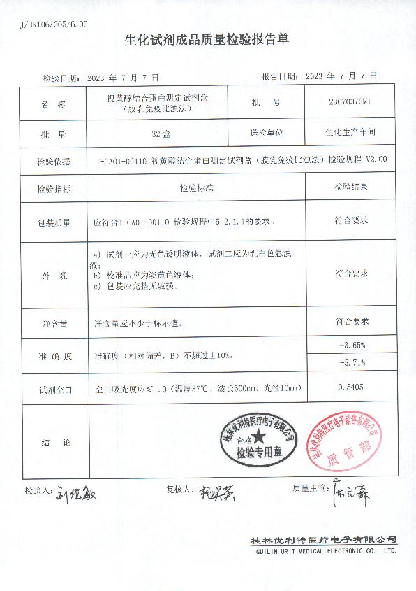 优利特视黄醇结合蛋白测定试剂盒(胶乳免疫比浊法)