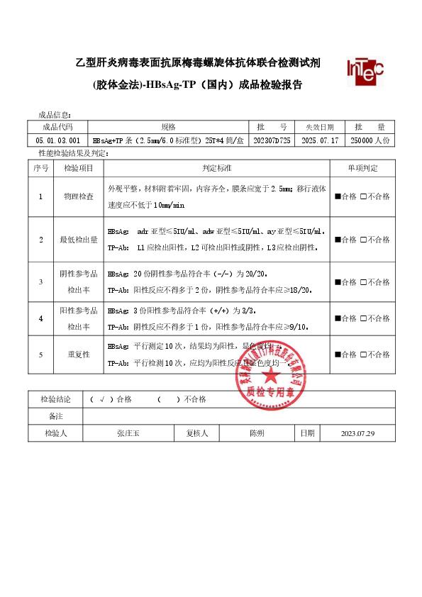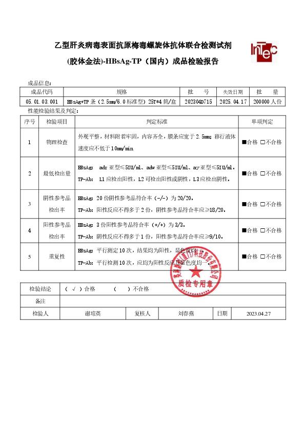 乙型肝炎病毒表面抗原/梅毒螺旋体抗体联合检测试剂(胶体金法)