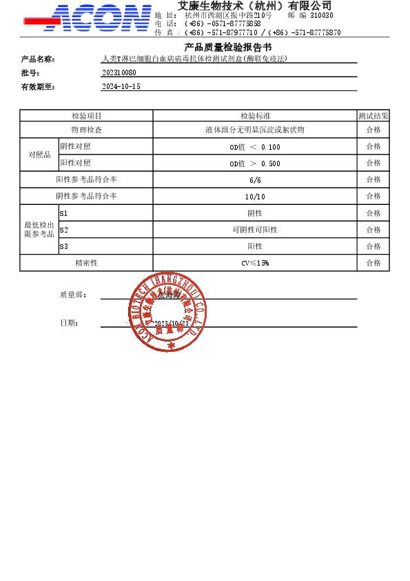 艾康人类T淋巴细胞白血病病毒抗体检测试剂盒(酶联免疫法)