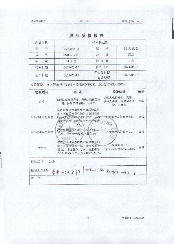 样本释放剂备案凭证