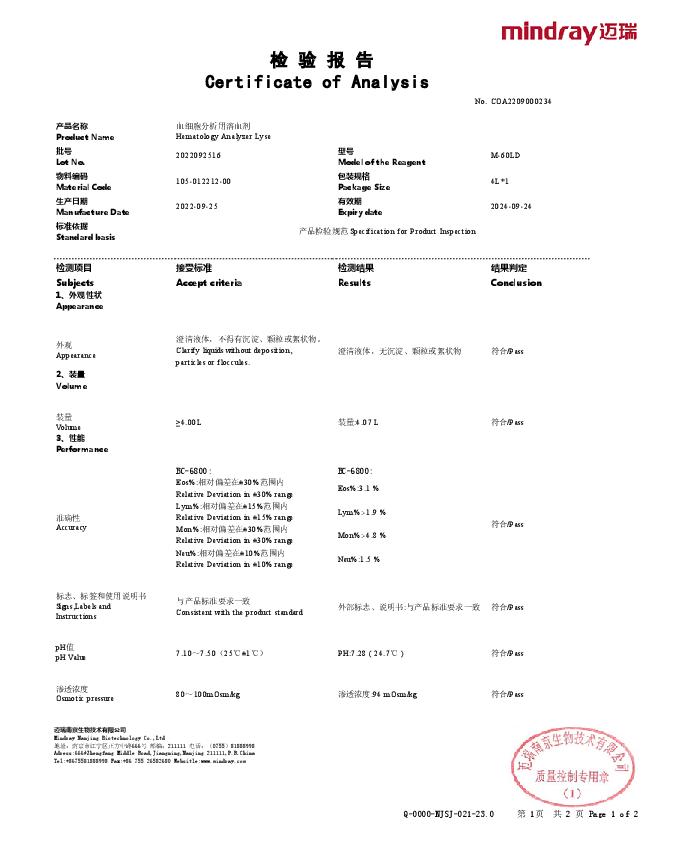 血细胞分析用溶血剂备案凭证