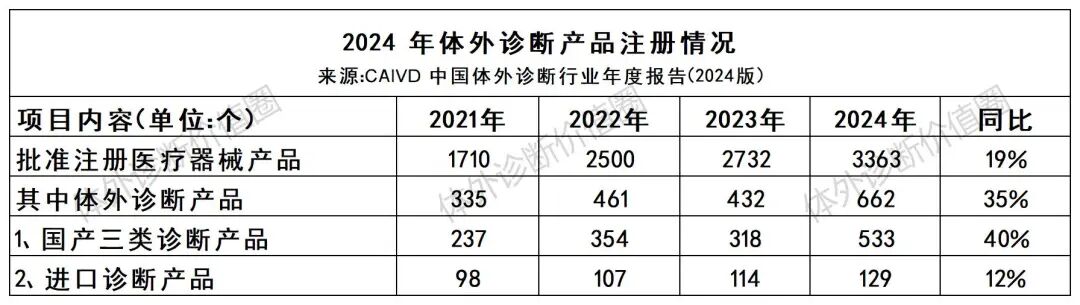 从注册情况来看,2023年国家药监局批准了318张IVD国产三类注册证,2024年批准了533张IVD国产三类注册证,同比增幅高达40%。