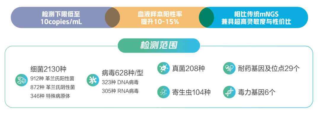 ● 兼顾广谱覆盖与检测深度,为疑难感染或筛查阳性复核提供有力支撑。
