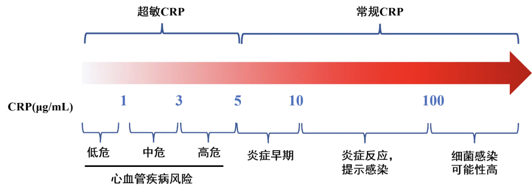 hs-CRP:更敏感地反映慢性低度炎症,与心血管疾病风险密切相关,尤其在健康人群中的心血管事件风险评估中具有重要价值。